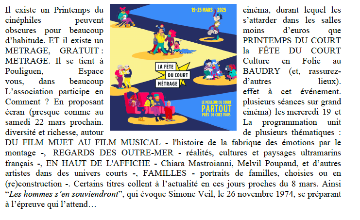 CULTURE EN FOLIE : LA FÊTE DU COURT METRAGE