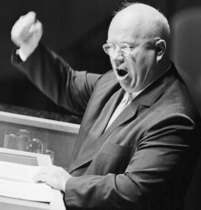 Souvenez-vous… Si vous êtes sexagénaire (au moins)… Le 12 octobre 1960, lors d’une réunion de l’Assemblée générale des Nations unies, le dirigeant soviétique Nikita Khrouchtchev aurait enlevé sa chaussure et, pendant son discours, frappé son pupitre avec afin d’exprimer sa colère. Qu’en est-il ? Cette histoire est largement considérée comme un mythe. Ce jour-là, une atmosphère tendue régnait : on discutait de la « question hongroise » – la répression du soulèvement en Hongrie par les troupes soviétiques en 1956 -. John Loengard, photographe du magazine Life, a depuis témoigné : Khrouchtchev « n’a assurément pas frappé sa chaussure sur la table », même s’il « avait clairement l’intention de le faire ». Certes une photo montre, sur la table devant Khrouchtchev, une chaussure sur laquelle repose sa main. Certains racontaient même qu’il s’agissait d’une TROISIEME CHAUSSURE sortie d’un cartable : la scène était préparée. Et, de fait, le dirigeant soviétique manifesta sa colère de manière spectaculaire, en gesticulant, en interrompant les débats et en mimant l’intention de se servir de la chaussure. Mais comme l’a dit Loengard, Khrouchtchev « a fait semblant que la prochaine fois, il frapperait son pupitre avec sa chaussure. Or, il l’a simplement remise et est parti. Aucun de nous ne manquerait de prendre une telle photo, si cela avait eu lieu ! ». En somme, ce qui reste vrai, c’est que ce geste théâtral, ou plutôt la simulation de ce geste était programmée. Pourquoi ? Pour protester contre les accusations portées par le représentant des Philippines, qui dénonçait la domination soviétique en Europe de l’Est. Il s’agissait d’attirer l’attention sur les critiques envers le colonialisme occidental, un sujet central de son discours. Frustré par le refus du président de séance de lui donner la parole, Khrouchtchev aurait ainsi exprimé son indignation. Cette mise en scène a eu des répercussions : l’épisode a consolidé l’image d’un leader impulsif et provocateur, amplifié l’idée que l’URSS était prête à défier l’ordre établi, mais cette dénonciation du colonialisme occidental a pu également renforcer le soutien des nations émergentes au bloc soviétique. Il a surtout contribué à ternir la crédibilité de Khrouchtchev en renforçant son image d’homme imprévisible. À moyen terme, s’ajoutant à d’autres actions controversées, cet acte théâtral a peut-être mené à sa destitution en 1964.