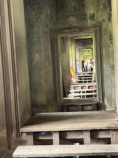 Deux femmes françaises mariées à des Khmers se disputaient pour prouver l’une à l’autre que leurs enfants étaient les uns plus Français que les autres de sorte qu’en cas de choix lors d’un “sauvetage” par la France ils aient plus de chances d’être évacués du Cambodge. Un professeur totalement absorbé par la rédaction de travaux sur l’Antiquité romaine m’expliquera très sérieusement qu’il n’avait pas le temps de s’occuper d’autre chose et pas même de sa famille devant absolument achever sa thèse avant de mourir puisque les Khmers Rouges le tueraient bientôt. Une rixe un jour eut même lieu pour savoir qui avait volé une truie et ses porcelets dans la cour…La truie réapparut heureusement assez vite au grand soulagement de chacun ! Quant à moi j'eus aussi mon moment "surréaliste" après quelques jours interminables dans une ambiance explosive. Nous demandant à quoi ressemblait désormais le centre de Phnom-Penh un ami médecin et moi décidâmes de tenter de sortir discrètement de l'ambassade et de nous y rendre. Totalement vidée de ses habitants, la ville nous apparut fantomatique mais jusqu'à la rue des argentiers, longeant discrètement les murs, il n'y eut aucun problème. De nombreuses bâtisses avaient été détruites et apparemment aucun pillage n'avait eu lieu. Le pire nous attendait pour retourner à l'ambassade. En effet une jeep de Khmers Rouges nous avait malencontreusement repérés et vint à nous nous forçant l'arme pointée sur la tempe à monter à bord. Je me demandais si vraiment "Le moment" était venu... Les barrages furent nombreux et la route choisie était à l'opposé de la direction de l'ambassade... Pourtant et contre toute attente après de longues discussions entre les soldats de la jeep et des femmes Khmers Rouges en charge de ce énième point de contrôle le véhicule fit demi-tour et nous ramena jusqu’à l'ambassade. Je ne saurai jamais si ce sont elles qui nous ont sauvés… et si la Femme fut ce jour-là aussi l’avenir de l’Homme. Et puis quelques semaines plus tard la nouvelle de l'organisation prochaine de camions khmers rouges destinés à nous conduire jusqu'en Thaïlande nous parvint. Notre situation d’otages allait prendre fin après plusieurs jours de transport sur des pistes chaotiques, sans certitude absolue quant à la destination finale... Etant le plus jeune du groupe des Français je me portai volontaire pour partir dans le tout dernier camion de l’ultime convoi. En revanche j'aurai le privilège de retourner au Cambodge dès 1979 parmi les premiers invités des nouvelles Autorités cambodgiennes après la défaite des Khmers Rouges. Une dernière vision d'horreur ne me quittera plus. Tandis que notre camion d’évacuation avançait lentement et avec difficulté sur les pistes je soulevais discrètement un coin de la bâche - ce que nous interdisaient les Khmers Rouges - et voyais des champs avec des prisonniers faméliques qui y travaillaient. Soudain une jeune femme vraisemblablement métisse apparut sur la piste, hurlant qu'elle était Française en tentant de s’agripper au camion pour nous rejoindre. Continuant à courir et ne cédant pas à l'injonction du soldat de lâcher prise ce dernier la mit en joue et lui tira une balle dans la tête. Souhaitant après ces quelques souvenirs, aussi douloureux soient-ils pour certains, vous quitter sur une note plus légère laissez-moi vous assurer enfin que je n’oublierai rien et que quoi qu’il puisse advenir je continuerai mon histoire d’amour avec le Cambodge… « Encore et Angkor »… Frédéric Benoliel