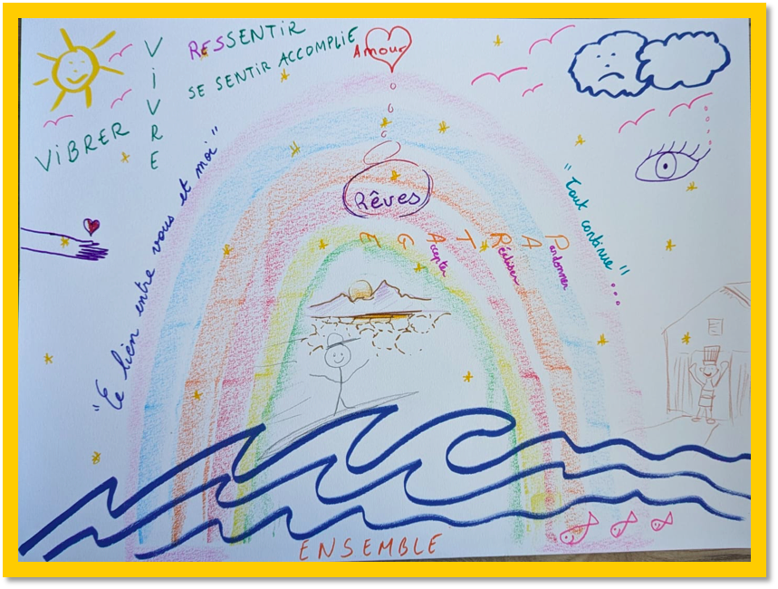 ILLUSTRATION ISSUE DE L’ATELIER « PARLER DE LA MORT NE FAIT PAS MOURIR », DESSIN EVOQUANT LA CITATION SUIVANTE « ET SI JE MOURAIS DEMAIN, J’AIMERAIS… » |
